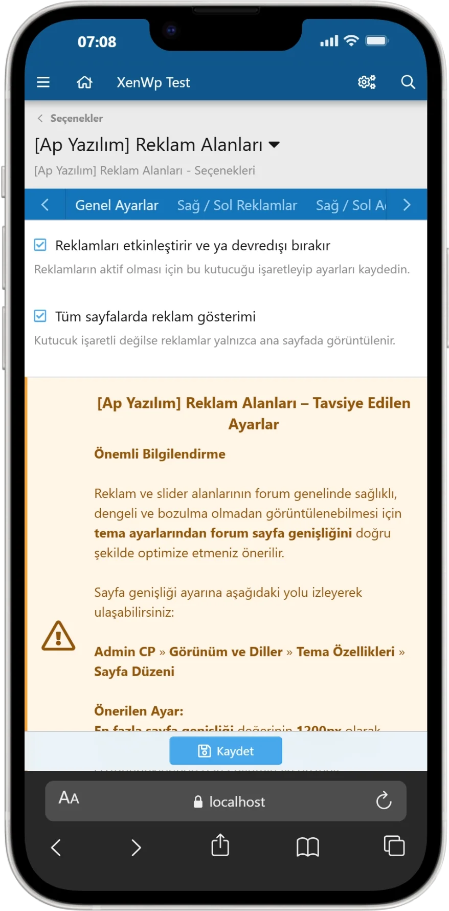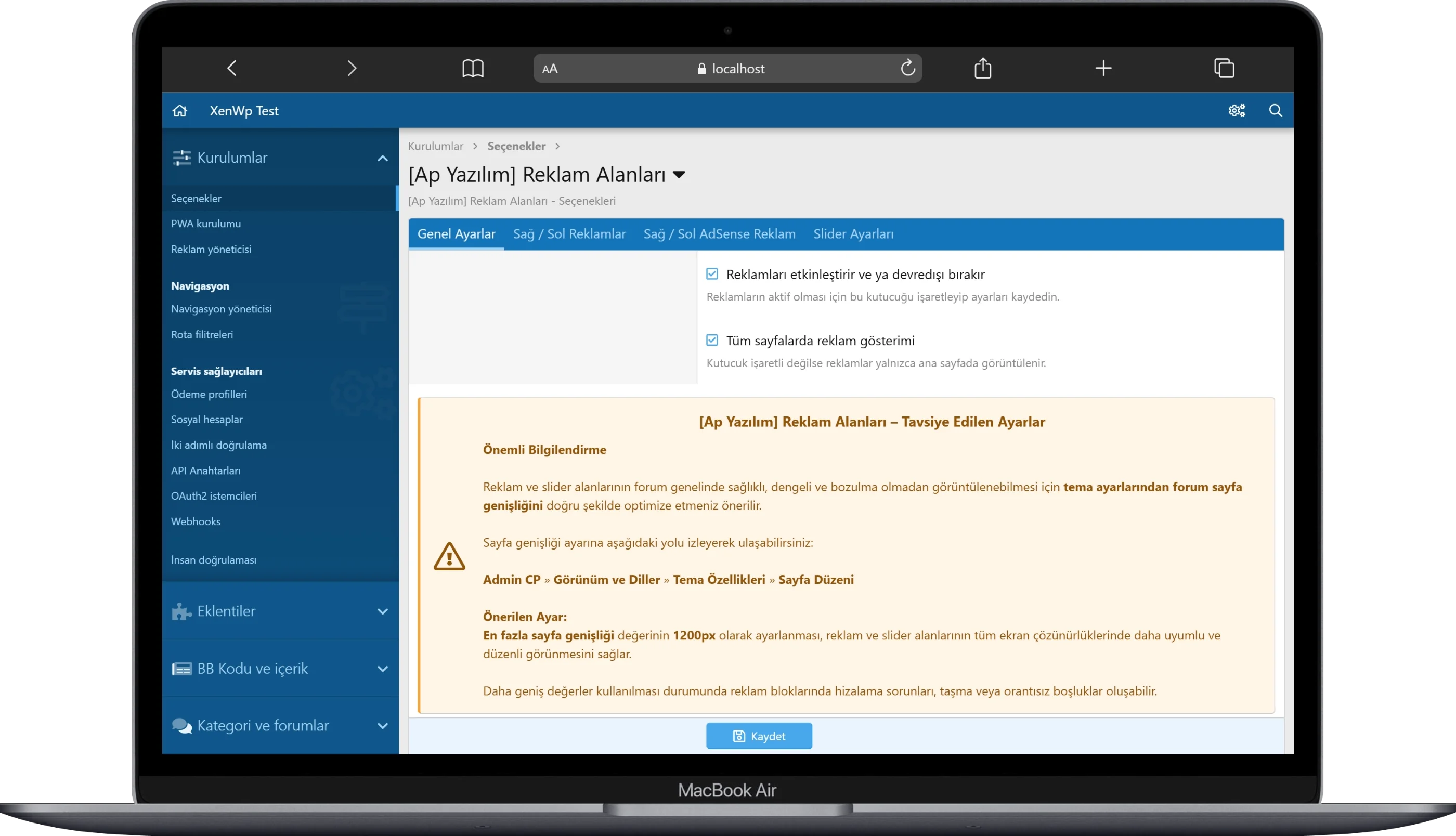 Çeviri, eklentinin mevcut sürümüyle tam uyumludur ve tüm reklam alanları, ayarlar ve yönetim paneli metinlerini doğru ve eksiksiz şekilde yansıtır.