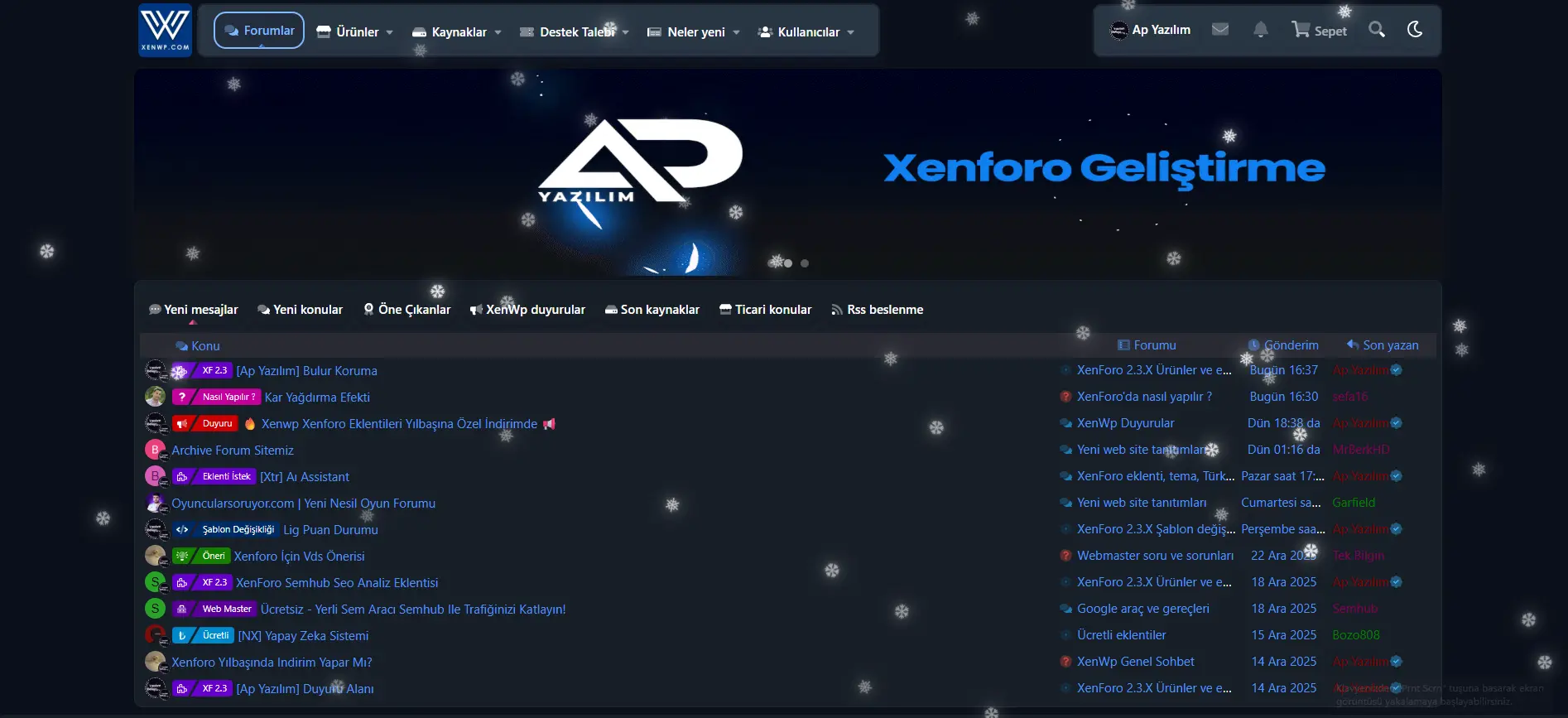[Ap Yazılım] – Kar Yağışı Efekti - Forum arayüzüne kış teması kazandıran, şablon üzerinden çalışan hafif kar yağışı efektidir.