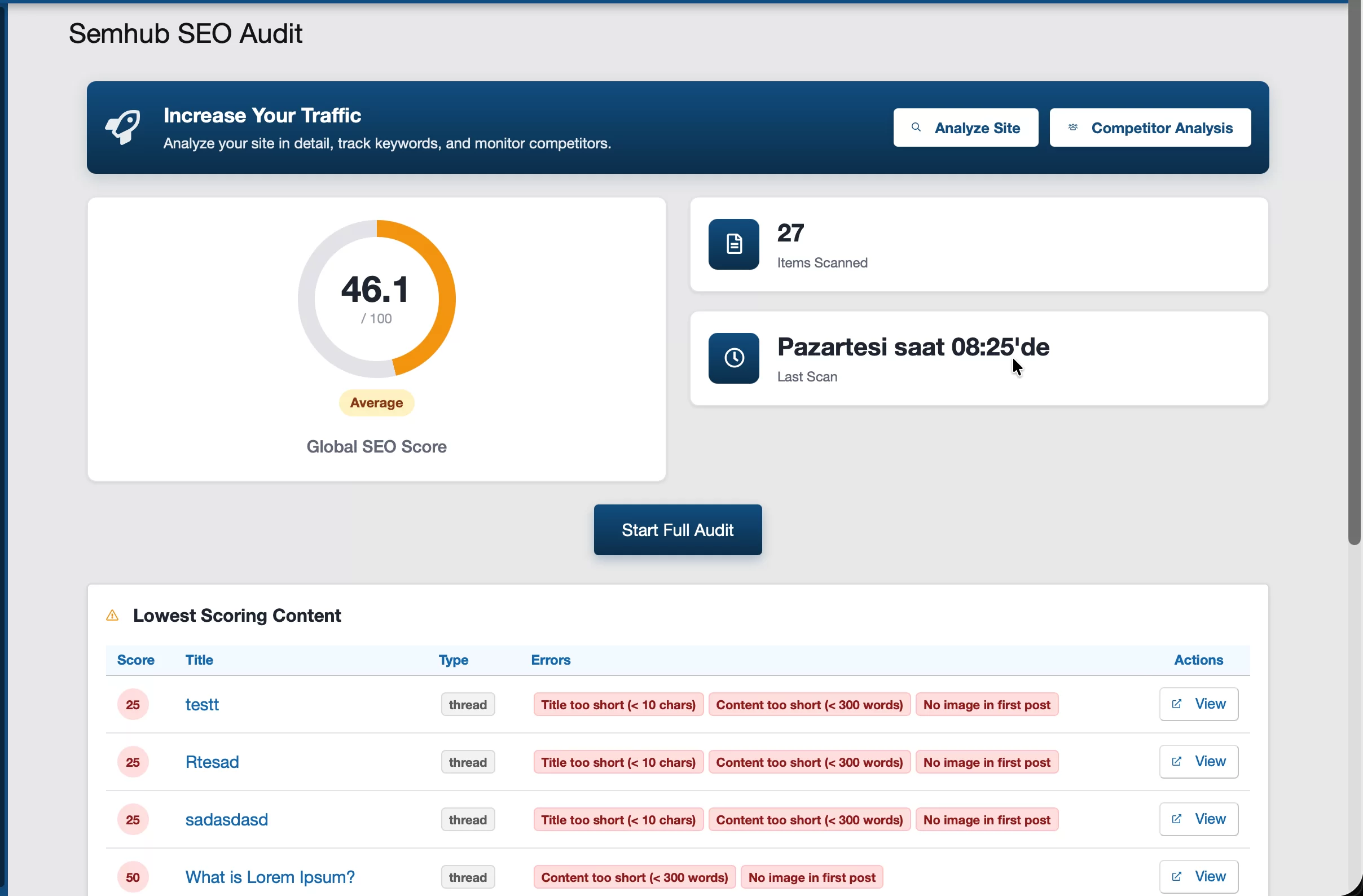 XenForo Semhub Seo Analiz Eklentisi - Bu eklenti xenforo forumunuzda ki sayfaları tarar, eksikleri sizlere belirterek puanlar.
